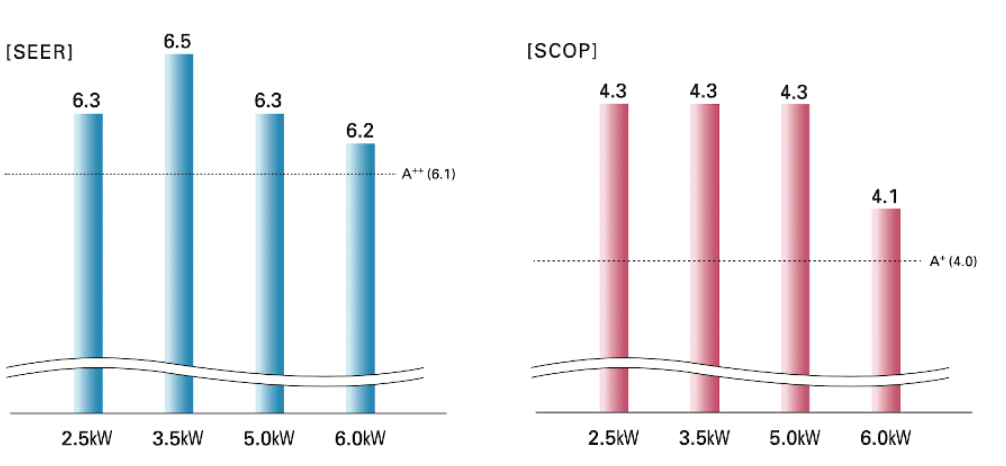 Economia de energie a fost clasificată A++ în SEER și A+ în SCOP.
