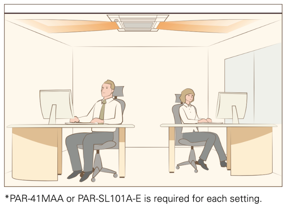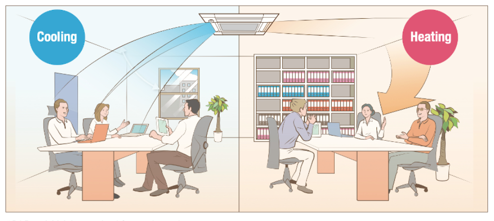 Unitatea de aer condiționat se comută automat de la circulare la încălzire. Căldura risipită acumulată lângă tavan este refolosită prin circulare. La atingerea unei temperaturi prestabilite, aparatul de aer condiționat trece de la încălzire la circulare și orientează aerul pe direcție orizontală. Împinge aerul cald acumulat lângă plafon în jos la înălțimea oamenilor, oferind astfel o încălzire inteligentă.