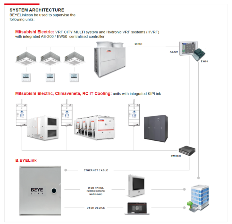 B.EYELink este noul sistem de supraveghere Mitsubishi Electric pentru sistemele HVAC, care permite supravegherea completă a tuturor serviciilor energetice pe care Mitsubishi Electric le poate gestiona, inclusiv tehnologiile Climaveneta și RC IT Cooling: