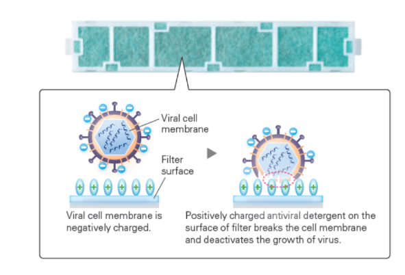 V Blocking este un nou filtru de purificare care îmbunătățește sistemul anterior de filtrare cu ioni de argint, adăugând acțiune antivirală pentru a inhiba virusurile, bacteriile, mucegaiul și alergenii.