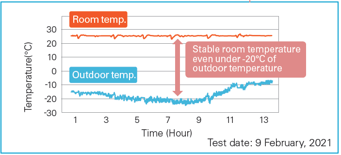 Am efectuat teste pe teren în mai multe regiuni reci, iar utilizatorii s-au declarat foarte mulțumiți de volumul de aer suficient și de performanța remarcabilă de încălzire a seriei RW. Rezultatele testelor confirmă faptul că seria RW asigură un confort interior stabil, chiar și în condiții de temperaturi ambientale extrem de scăzute.