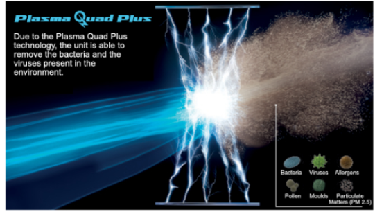 Prin utilizarea tehnologiei Plasma Quad Plus, aparatul poate să elimine bacteriile și virusurile, datorită unei tehnologii care utilizează un câmp electric și o serie de descărcări electrice prin care trece aerul care intră în cameră.