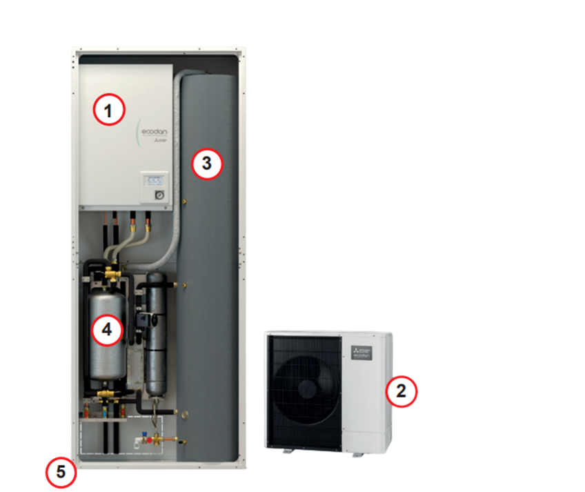 Ecodan InWall 2.1 este o soluție completă, proiectată și dezvoltată pentru a fi încorporată. Sistemul cuprinde trei componente principale: cutie exterioară, boiler de apă caldă menajeră de 175 litri și kit de distribuție hidraulică, inclusiv sondă dublă de apă caldă. Flexibilitate maximă în alegerea pompei de căldură dintre numeroasele disponibile. Modulul Hydrobox completează sistemul.