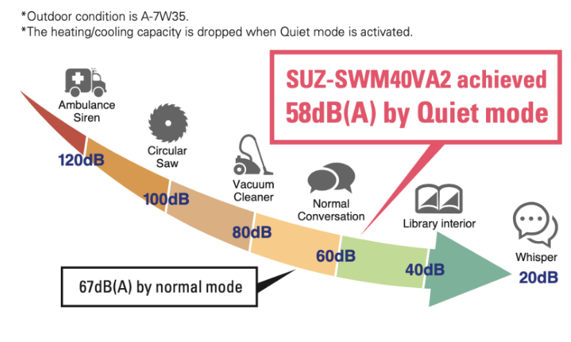 Unitățile minisplit Ecodan SUZ R32 emit niveluri de zgomot foarte scăzute, dar au și o dimensiune redusă a șasiului, asigurând aplicabilitatea chiar și în cele mai sensibile medii.