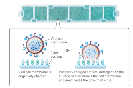 prin adăugarea acțiunii antivirale care inhibă virusurile, bacteriile, mucegaiurile și alergenii.