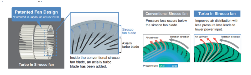 Grație introducerii agentului frigorific R32 în combinație cu noul design îmbunătățit al ventilatorului, a fost posibil să se reducă consumul de energie, crescând în același timp performanța.