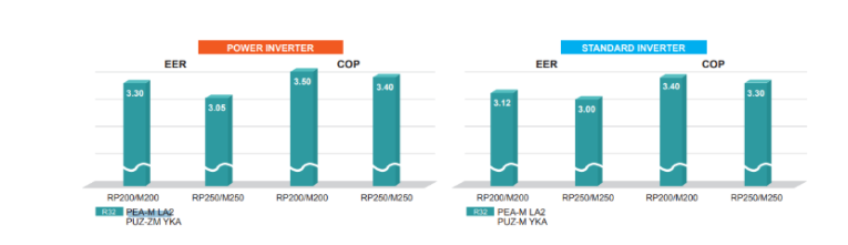 În timp ce furnizează o putere nominală de până la 25 kW în modul de răcire, unitățile PEA-M LA2 tip duct dispun de o unitate exterioară într-o configurație cu ventilator dublu, evitând astfel amprenta la sol a unităților condensatoare tradiționale de mare putere, care utilizează o configurație cu flux superior.