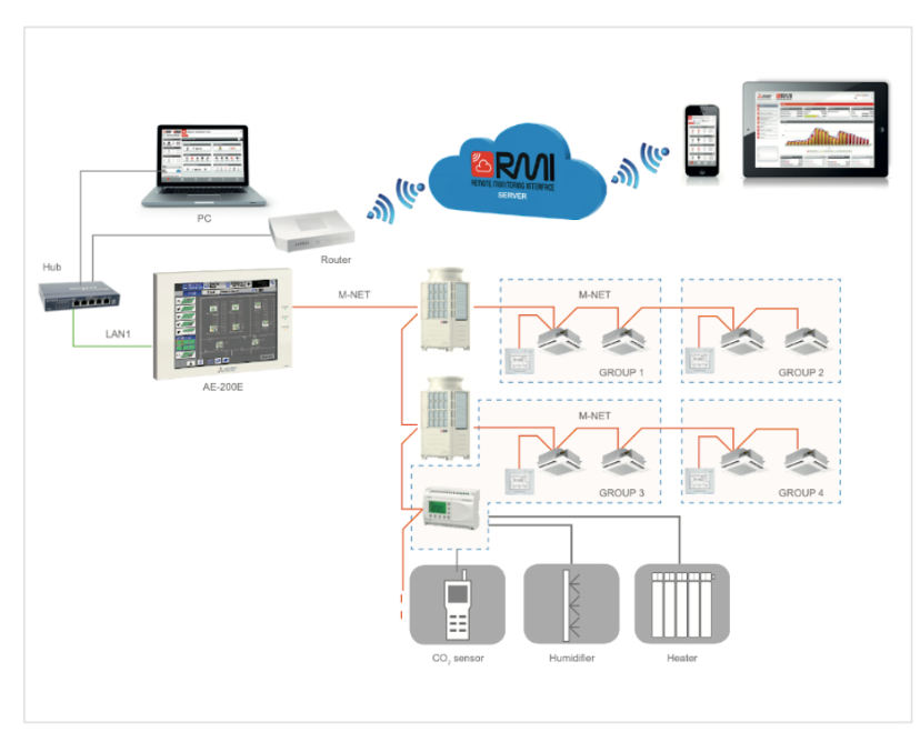 - Managementul a până la 50 de grupuri cu un total de 50 de unități interioare.