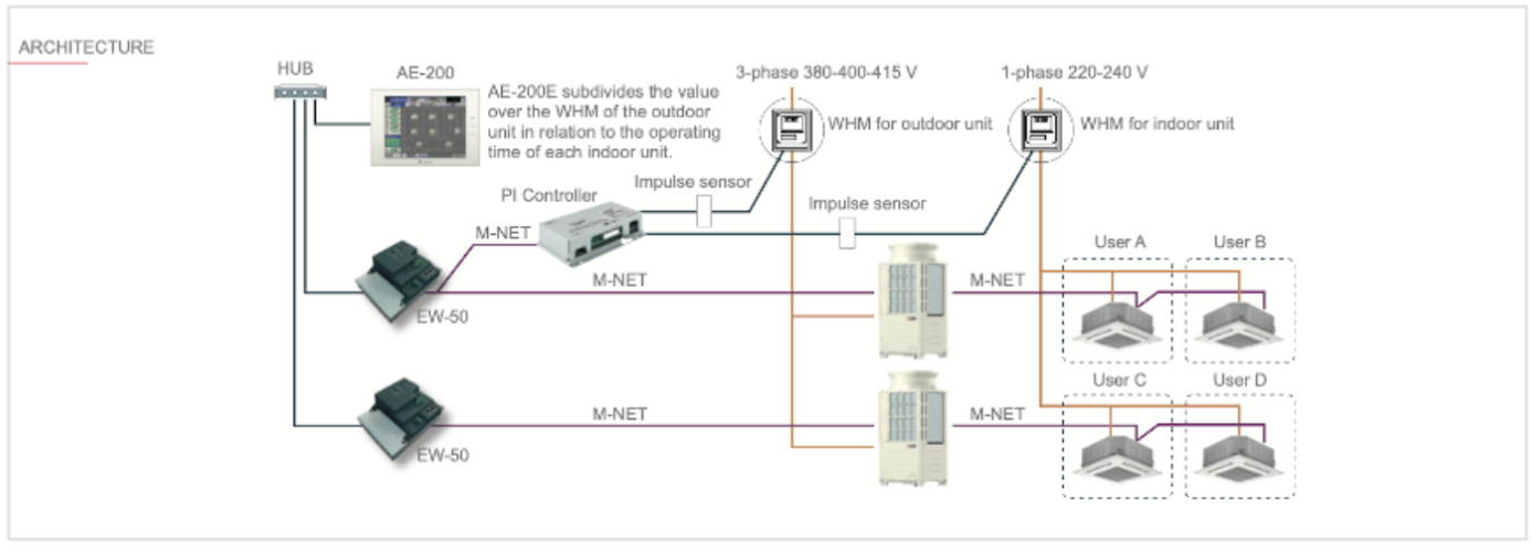 Interfața M-Net, model PAC-YG60MCA, este un dispozitiv pentru achiziția de date de la contoarele digitale cu ieșire de impulsuri, pentru a fi instalat pe perete sau într-un dulap electric.