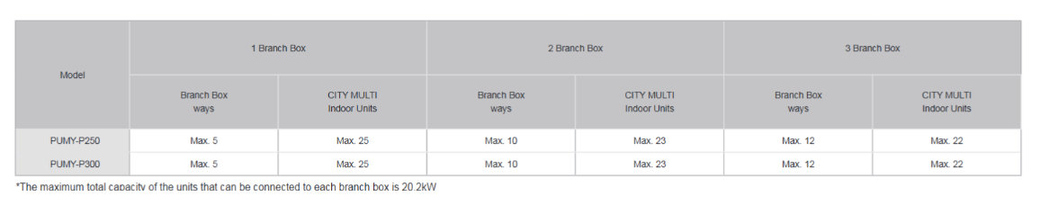 Cu noile PUMY YBM, sunt garantate un grad ridicat de flexibilitate în proiectarea sistemului și alegerea unităților interioare, datorită configurației cutiei de derivație. De asemenea, este posibilă conectarea a până la trei cutii de ramificație.