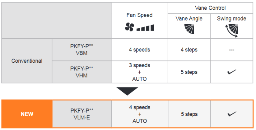 The new PKFY-P VLM wall-mounted units are getting closer and closer in features to residential indoor units.