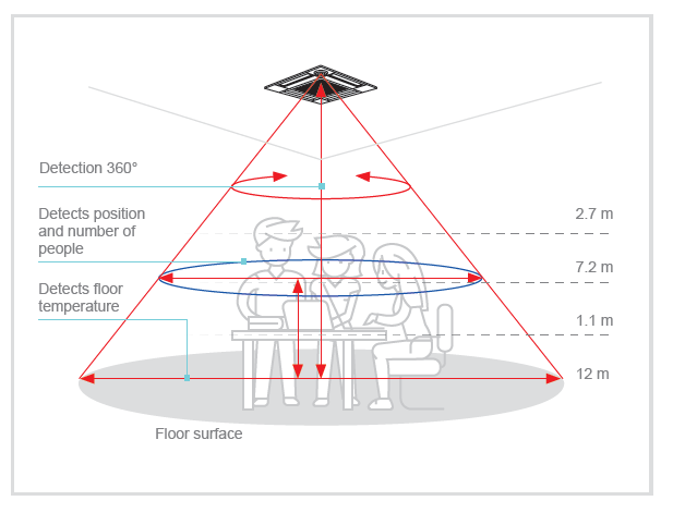 Senzorul 3D i-see poate să detecteze temperatura la sol a camerei cu aer condiționat pentru a direcționa fluxul de aer către zonele cele mai dezavantajate ale camerei. Mai exact, deflectoarele se vor deplasa spre zonele cu temperatură ridicată a solului în timpul funcționării de răcire și spre zonele cu temperatură scăzută a solului în timpul funcționării de încălzire.