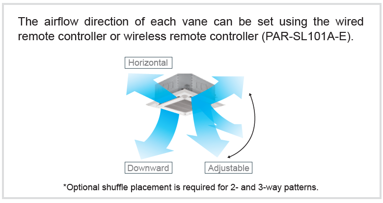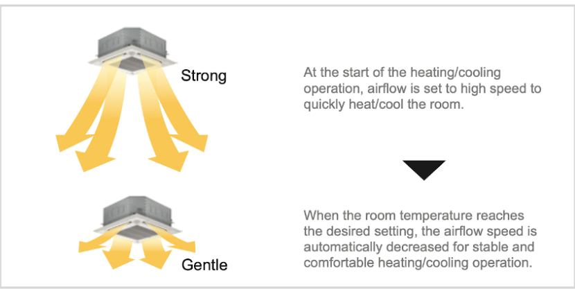 Noua unitate interioară este echipată cu funcția „flux orizontal”, care permite aerului să treacă pe lângă tavan, sporind astfel senzația de confort percepută de ocupanți.