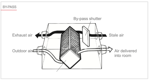 Când sistemul de aer condiționat funcționează în modul de răcire și temperatura exterioară este mai scăzută decât temperatura camerei (așa cum se întâmplă de obicei în timpul nopților de vară), unitatea interioară GUF detectează această situație și exclude automat elementul de recuperare din fluxul de aer.